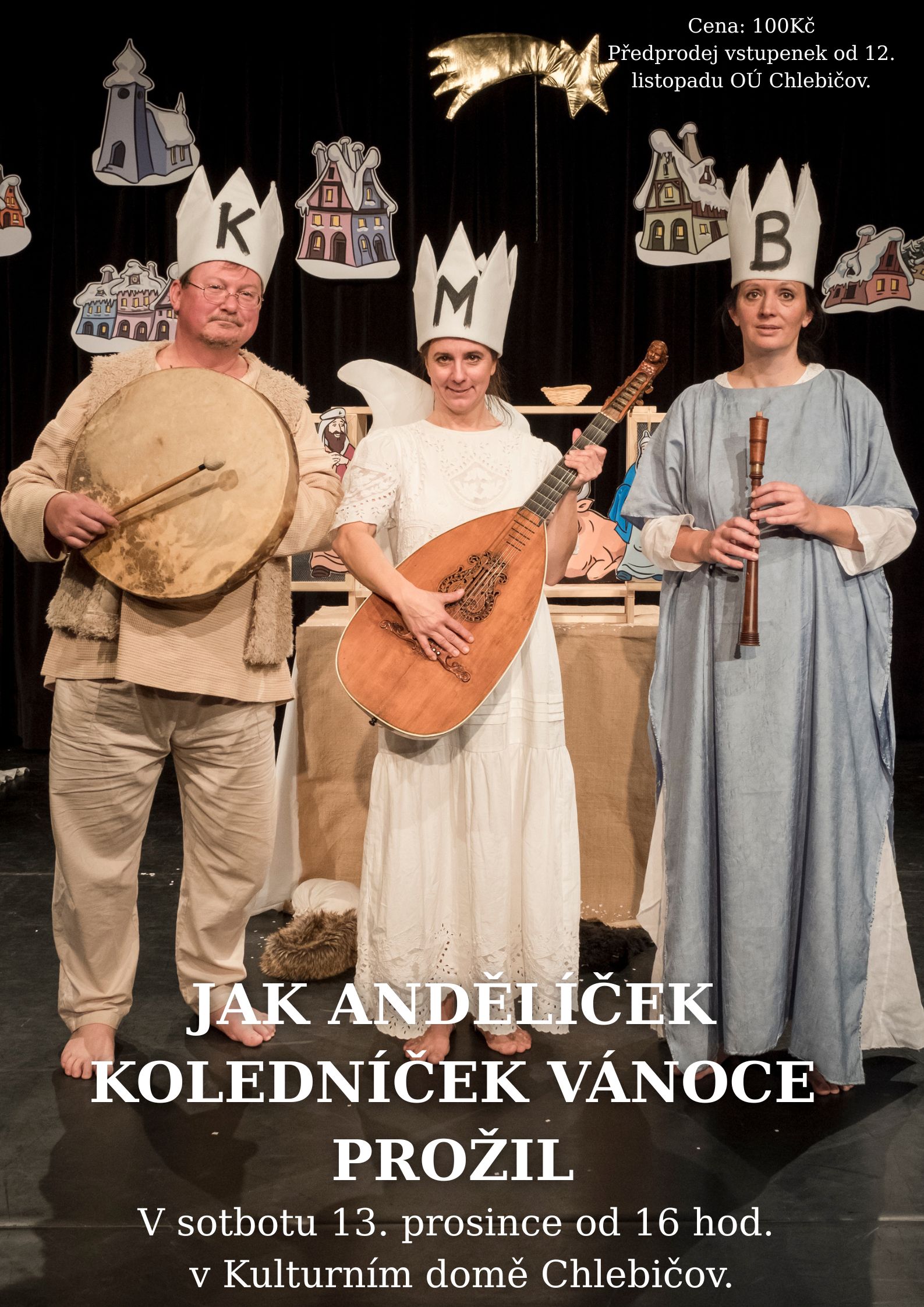 Divadelní představení Jak andělíček Koledníček Vánoce prožil v sobotu 13. prosince od 16 hod. v Kulturním domě Chlebičov