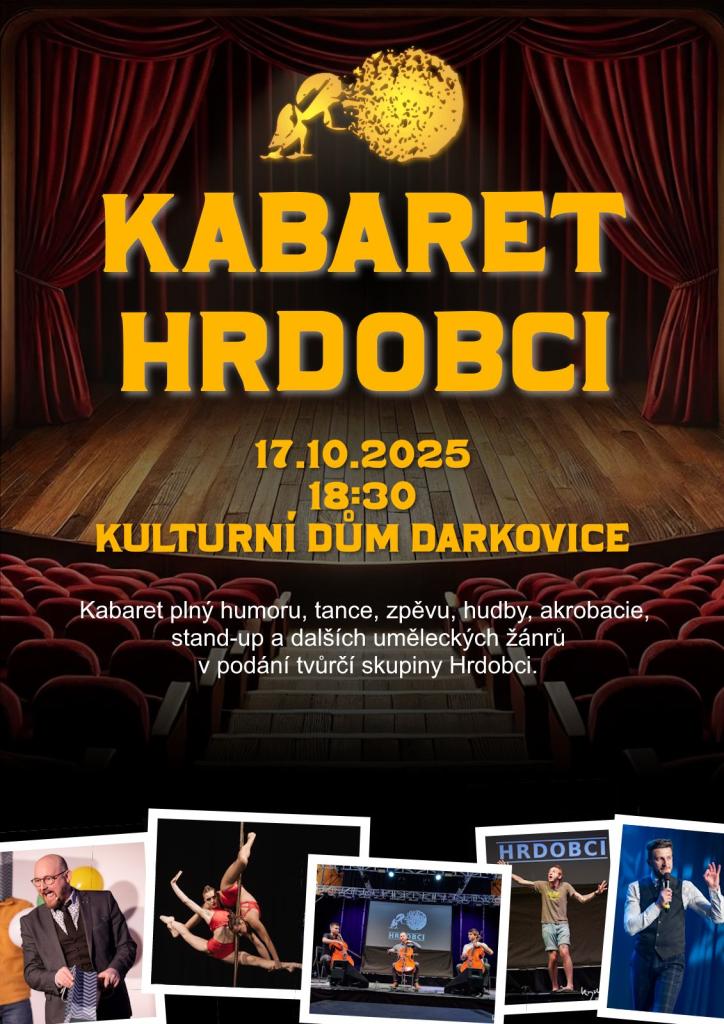 V kulturním domě 'Darkovice' se 17. října 2025 uskuteční jedinečný kabaret, který nabídne nezapomenutelný zážitek plný humoru, tance, zpěvu a akrobacie. Umělecká skupina Hrdobci představí pestrou škálu žánrů včetně stand-upu. Tento večer plný zábavy a talentu rozhodně nesmíte propásnout!