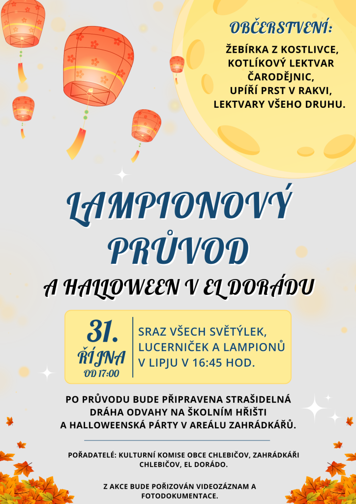 Lampionový průvod 31. října od 17 hod. v areálu Zahrádkářů Chlebičov, sraz světýlek bude v 16.45 hod.