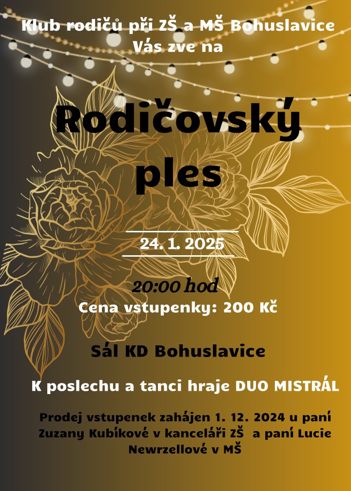 klub rodičů při ZŠ a MŠ Bohuslavice Vás zve na Rodičovský ples
